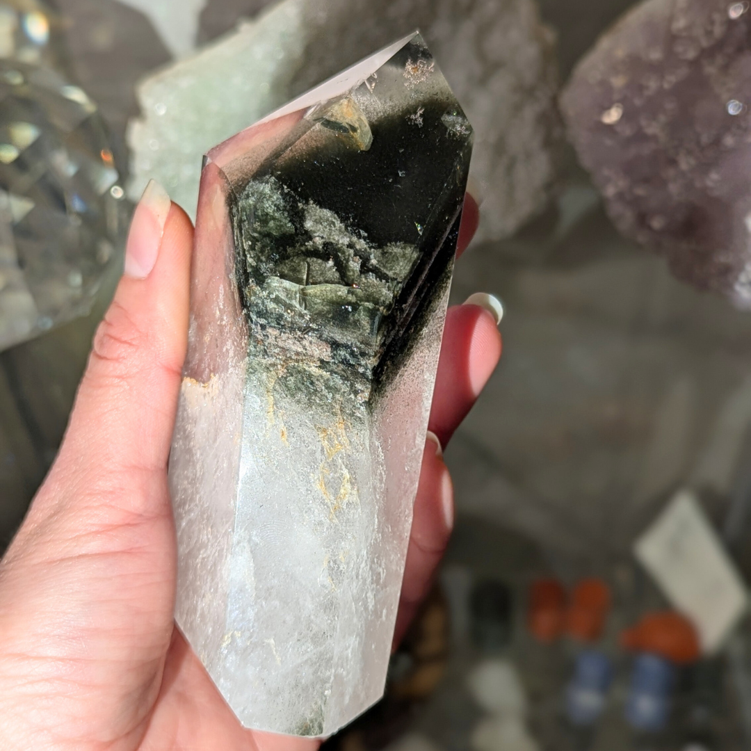 Lodolit er en kvarts med inklusioner af fx sand, jord eller lign der er blevet indesluttet i krystallen. De ligner små skov universer og leder ofte mine tanker hen på mos eller hav miljøer.