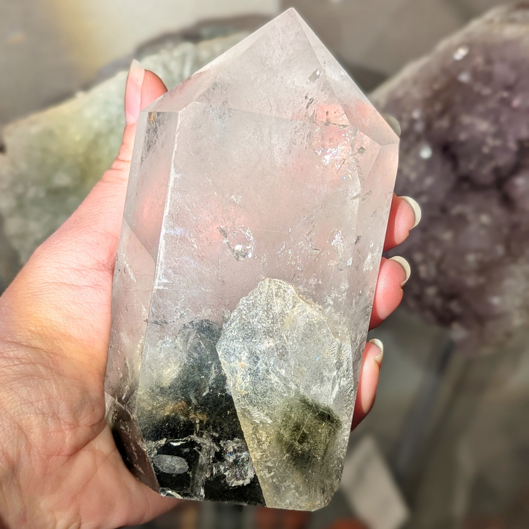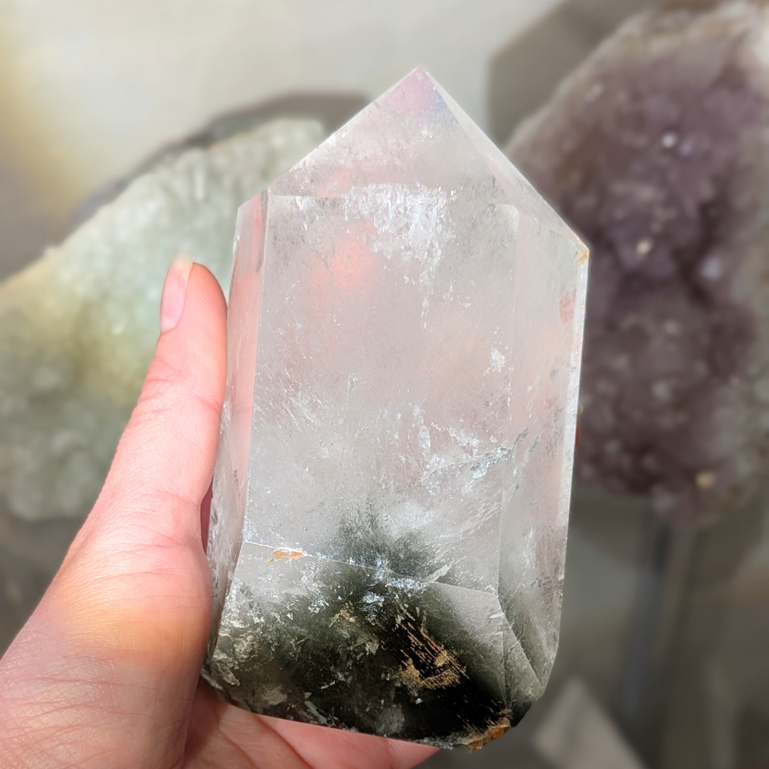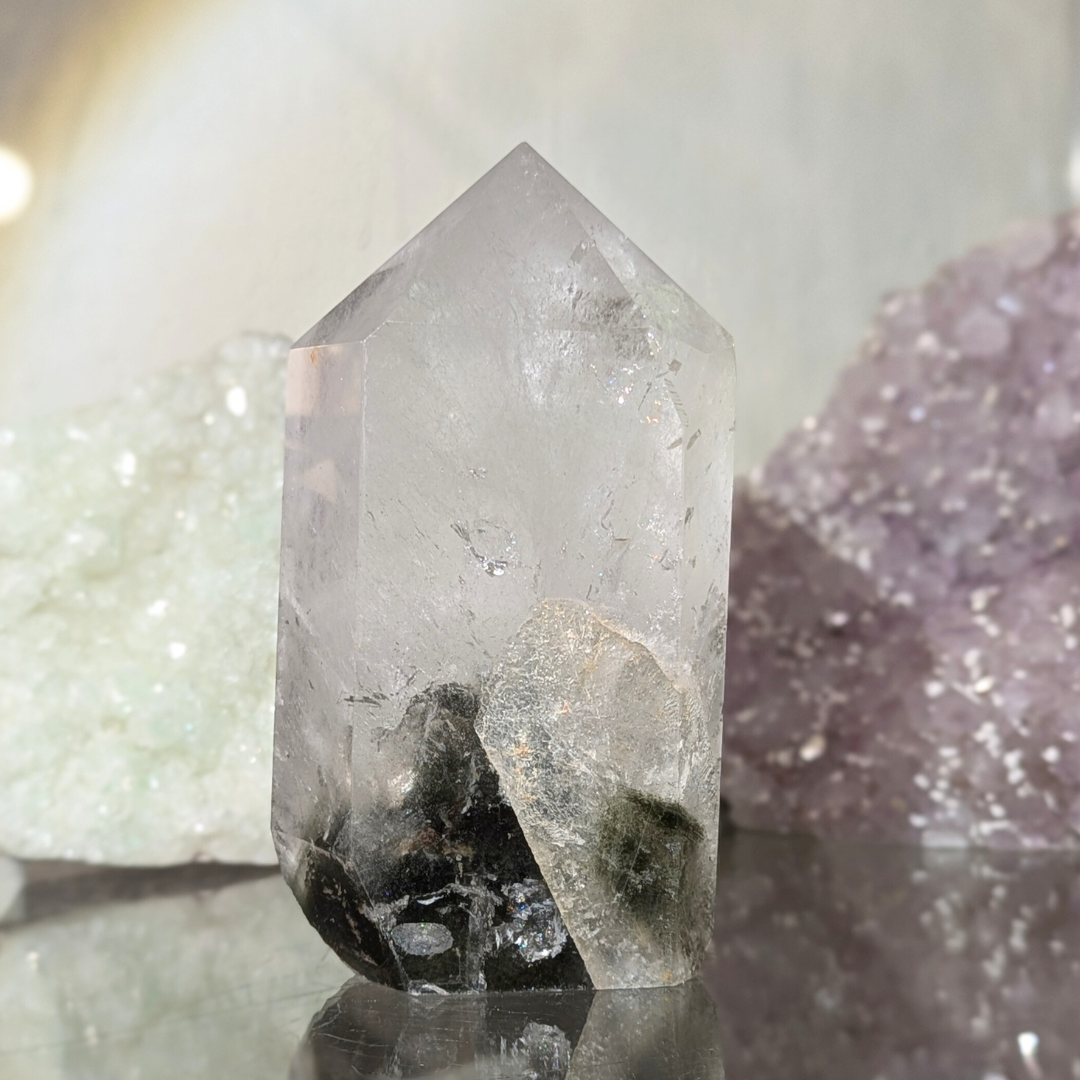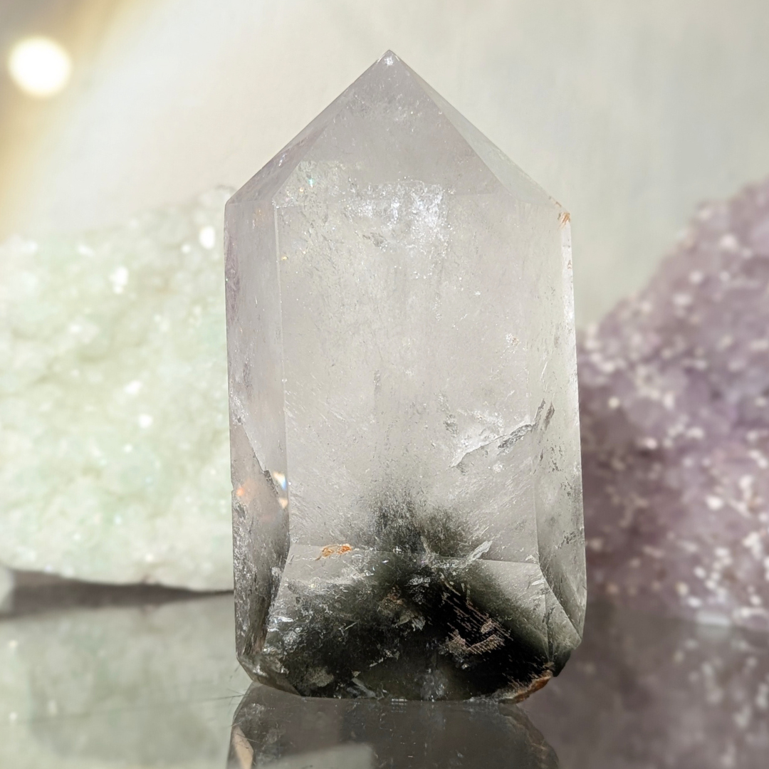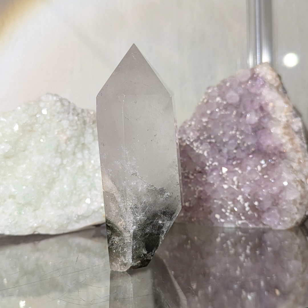 Fantom krystallen indeholder små pyramidemønstre, som markerer det vækstmønster, krystallen har gennemgået. En fantom krystal har optaget lærdom gennem evigheder. Den sætter fortiden i perspektiv og peger fremad mod vækst og evolution.