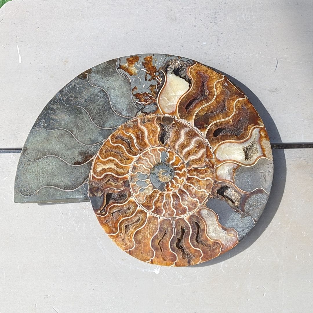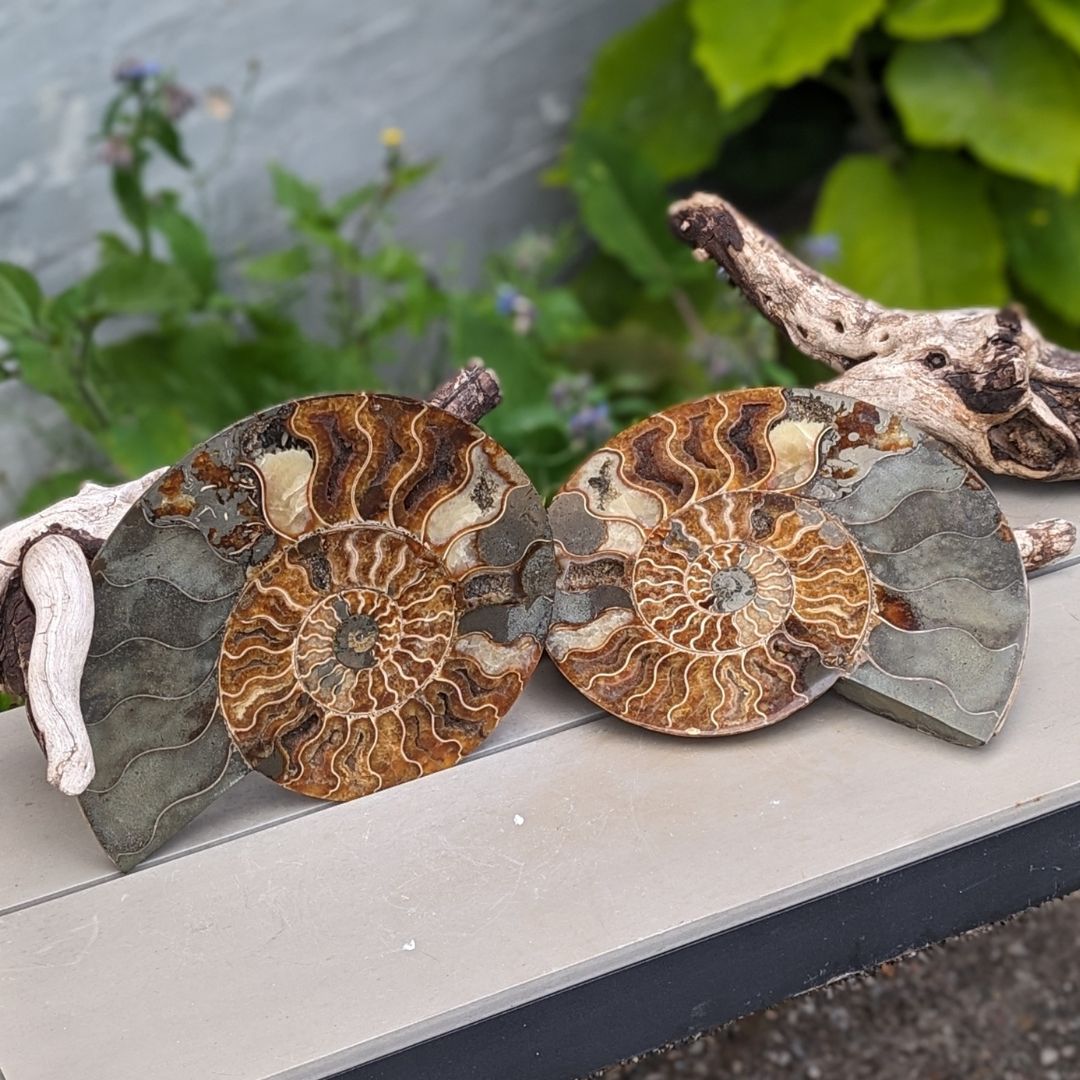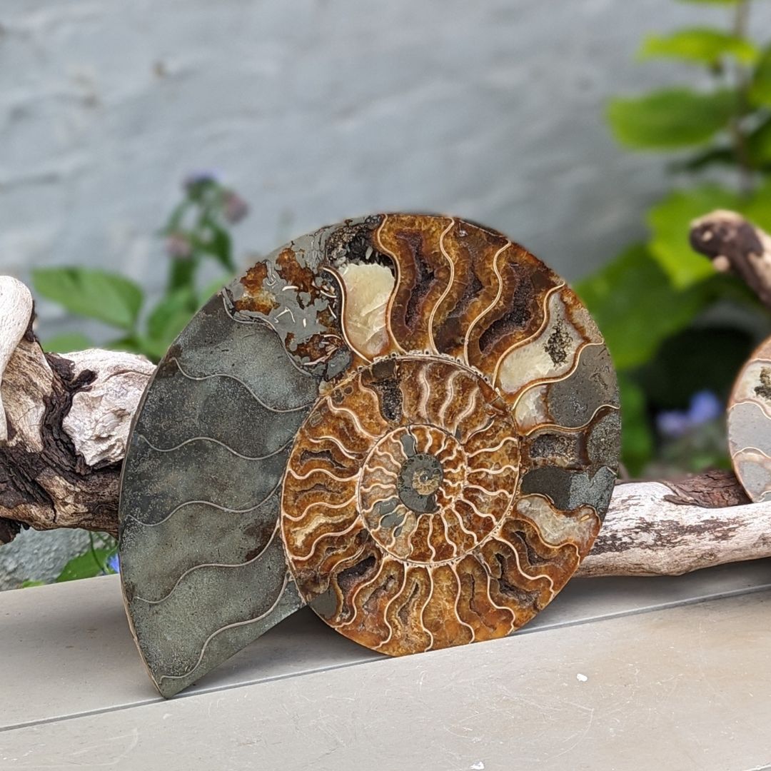 Ammonit er en meget powerfuld jord healende fossil. Formen symboliserer forandringsprocesser og evolution. Fossilen har absorberet kosmisk energi i mange årtusinder og stimulerer livskraften i dig. Den kan hjælpe dig med at aktivere din kundalini og forbinde dig med energien/visdommen fra gamle liv. Ammonit anbefales ofte til at tiltrække godt helbred, held og succes. Ammonit fjerner negativ energi. Den er ligesom et filter, der filtrerer uønsket energi væk. Den fylder dig med ny, positiv og kærlig livskraft. Den kan understøtte din livskraft og vitalitet.