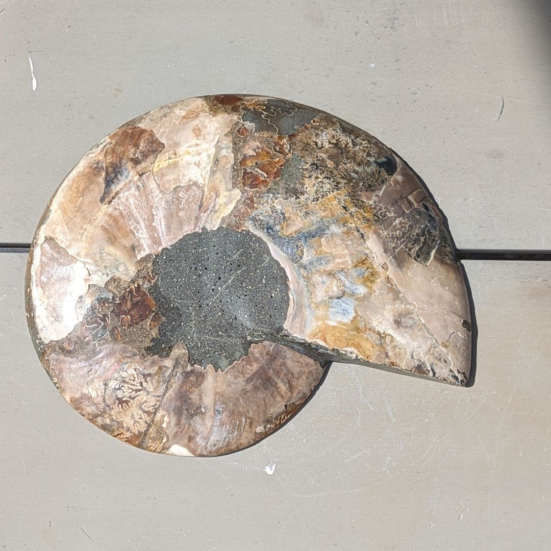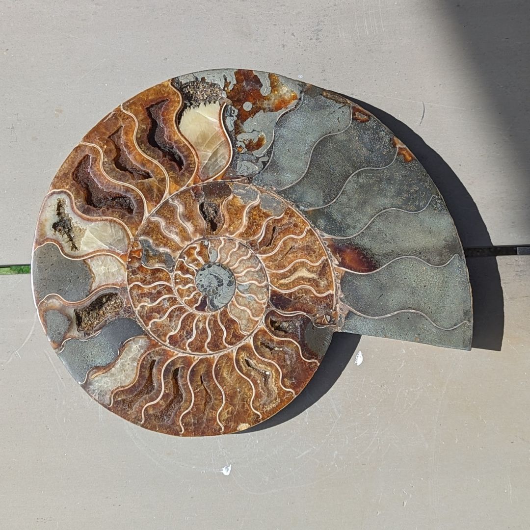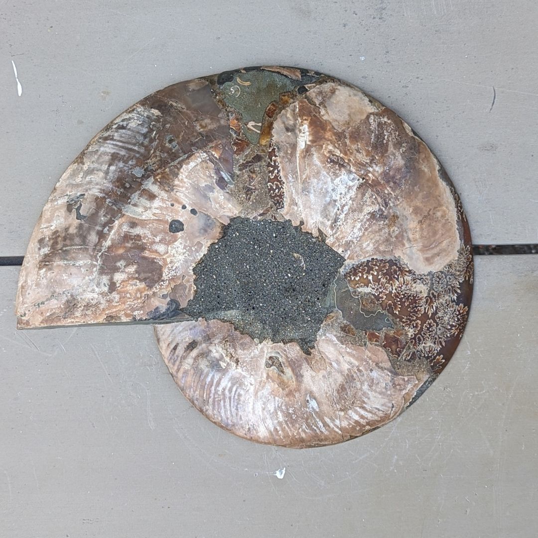 Ammonit er en meget powerfuld jord healende fossil. Formen symboliserer forandringsprocesser og evolution. Fossilen har absorberet kosmisk energi i mange årtusinder og stimulerer livskraften i dig. Den kan hjælpe dig med at aktivere din kundalini og forbinde dig med energien/visdommen fra gamle liv. Ammonit anbefales ofte til at tiltrække godt helbred, held og succes. Ammonit fjerner negativ energi. Den er ligesom et filter, der filtrerer uønsket energi væk. Den fylder dig med ny, positiv og kærlig livskraft. Den kan understøtte din livskraft og vitalitet.