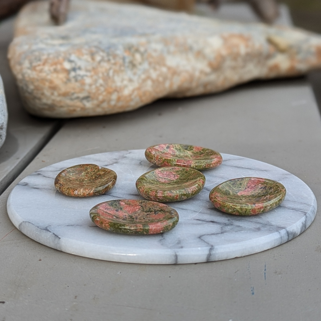 Unakit forbinder os til vores hjertes ønsker samtidig med, at vi føler os frie og stærke. Med hjælp fra unakitten tør vi bestemme over vores eget liv og vi tør lytte til vores hjerte og handle efter det vores hjerte fortæller os. Den vil fylde os med styrke, tryghed, tillid, selvtillid og velvære. Når vi føler os trygge tør vi netop at sige fra overfor situationer vi ikke vil tage del i- vi sætter grænser. Den afbalancere følelser og spiritualitet. Ved blokeringer kan unakit give indsigt i årsagerne hertil. Den er ligeledes nyttig ved healing af tidligere liv. Unakit er også godt til det kvindelige forplantningssystem.